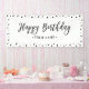 Ce design élégant de bannière d'anniversaire comprend un script simple "Joyeux anniversaire" avec un arrière - plan confetti simple. Vous pouvez personnaliser le texte du nom et la couleur de l'arrière - plan. Décor parfait pour votre fête d'anniversaire adulte chic et moderne. Des invitations d'anniversaire pour adultes et des fournitures de fête sont disponibles dans mon magasin BaraBomDesign. Merci !