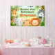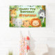 Célébrez l'aventure Safari pour tous les âges. Cette bannière Safari Anniversaire est une prise moderne de la nature sauvage que nous aimons. Chaque élément et arrière - plan sont tous numériquement dessinés pour correspondre et fournir un look de film animé, avec le nom du célébrant indiqué en surbrillance dans le centre pour fournir une touche personnalisée sur la bannière