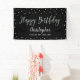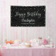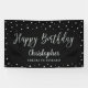 Ce design élégant de bannière d'anniversaire présente une typographie argentée "Joyeux anniversaire" sur un arrière - plan noir. Vous pouvez personnaliser le nom et le texte de l'année et la couleur de l'arrière - plan. D'autres articles de papeterie et de décoration sont disponibles dans ma boutique BaraBomDesign. Merci !