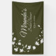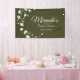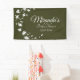 Joli et moderne panneau de douche nuptiale avec un spray de fleurs blanches et blanc personnalisable texte sur l'arrière - plan vert d'automne