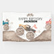 Ce fond de scène d'anniversaire de Monster Truck est le moyen idéal de faire monter l'excitation lors de la fête de votre petit. Avec des monstres peints à la main en aquarelle écrasant des monticules de terre accidentés, ce design audacieux et dynamique apporte le frisson de l'arène directement à votre événement.