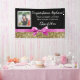 Parties scintillant or, arc rose et ruban image. Ajoutez la photo de votre fille de graduation personnalisée à cette élégante parties scintillant scintillante avec l'arc. Joli bling pour la jeune fille diva de l'année dernière diplômée ! Bandeau de nom personnalisé imprimé sur mesure. Fête de remise de diplômes pour filles. Bannière de la fête de remise de diplômes personnalisée en extérieur ou en intérieur avec l'année, le nom, le lycée de votre diplômé. Une façon spectaculaire de féliciter le diplômé et d'accueillir la famille et les invités à votre fête de remise de diplômes.