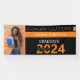 Banderole photo avec photo, nom du diplômé et année de classe. La bannière est décorée dans les tons orange et noir. Ajoutez simplement votre photo et vos informations, ajoutez cette bannière à votre panier et célébrez cette grande réalisation. Graduate Black Orange Photo Graduation Bannière Conception de jour férié | ©Melissa Patton - Designer
