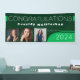 Une bannière de remise de diplômes avec trois photos, le nom du diplômé et l’année de classe. La bannière est décorée dans les tons vert et blanc. Ajoutez simplement leurs photos et informations, ajoutez cette bannière à votre panier et célébrez cette réalisation majeure. Photo verte moderne Bannière de graduation Conception de jour férié | ©Melissa Patton - Designer