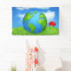 Belle illustration de la terre de planète sur l'herbe, les nuages rouges de fleur et le ciel bleu