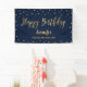 Ce design élégant de bannières d'anniversaire présente une typographie dorée "Joyeux anniversaire" sur un arrière - plan bleu marine. Vous pouvez personnaliser le nom et le texte de l'année et la couleur de l'arrière - plan. Décor parfait pour votre fête d'anniversaire adulte chic et moderne. Si vous avez besoin d'articles correspondants, veuillez me contacter par e-mail [ barabomdesign@gmail.com, printer).aspx ] . Merci !