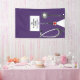 Banderole créative de diplôme d'une école de soins infirmiers avec des félicitations, des gommages d'hôpital violet et du stéthoscope pour la fête des infirmières diplômées. Modifier le texte pour ajouter le nom et les références médicales.