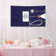 Banderole de félicitations pour la remise des diplômes de l'école de soins infirmiers créative mettant en vedette les gommes d'hôpital bleu marine et le stéthoscope. Pour personnaliser modifier le texte pour ajouter le nom de votre infirmière diplômée préférée.