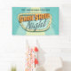 Bannière nocturne du Jeu Show montrant une signature typographique de "Game Show Night". Ces designs comprennent des éléments de bleu, jaune, rouge et orange, une enseigne lumineuse et des éléments inspirés par des spectacles de jeux rétro. Les produits incluent un modèle pour la personnalisation personnelle.