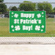 Bannière de la fête verte du Joyeux St Patrick. Banderoles décoratives intérieures et extérieures personnalisées avec texte gras. Gros signe de typographie avec des clous de girofle. Facile à raccrocher dans votre maison, jardin, école, route, bureau, pub, bar, café, restaurant etc. Signalisation personnalisée et design de décoration.