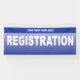 Bannière d'inscription pour accrocher au-dessus de la table d'inscription à votre événement ou conférence. Modifiez le champ nom de votre événement et ajoutez du texte dans la zone inférieure si nécessaire. Commandez la version de bannière extérieure pour les événements sportifs, marathons, courses, etc. La version intérieure peut fonctionner pour des conférences, ateliers, salons ou tout événement intérieur. Enregistrez et utilisez de nouveau la bannière si vous n'ajoutez pas de dates. Facile à voir et à lire à distance avec type blanc sur arrière - plan bleu.