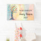 Bannière Family Reunion Family Tree. Ajoutez cette bannière familiale moderne et élégante à votre décor de fête familiale. Il présente un arbre généalogique en mosaïque aux couleurs arc-en-ciel sur un arrière - plan aquarelle. Personnalisable avec votre nom de famille et l'année. Parce que nous créons notre propre oeuvre, vous ne trouverez pas cette image exacte d'autres designers. Mosaïque originale et aquarelle © Michele Davies.