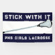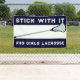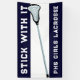 Bannière de crosse pour filles avec ligne de motivation et conception de bâton laxiste sur arrière - plan bleu marine. Modifiez le texte pour customiser pour votre soirée de crosse, l'événement d'équipe sportive, la journée de jeu, la soirée de classe supérieure ou les essais en équipe.