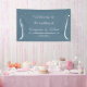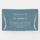 Ajoutez une bannière de bienvenue dans des tons bleu poussiéreux avec des ornements floraux, les noms des mariés et la date. Parfait pour votre réception de mariage ! Changez simplement le texte pour une Baby Shower !