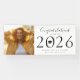 Bannière de fête de remise des diplômes moderne et simple avec l'année 2025 et une casquette de diplômé à l'intérieur du zéro. Vous pouvez ajouter le nom du diplômé, de l'école et de l'année.