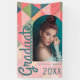 Bannière de remise de diplômes rétro tendance, avec une photo en forme d'arche sur un fond abstrait, dans des nuances de rose, vert, pêche et sarcelle. La bannière comporte un modèle moderne d'annonce de remise de diplôme facile à personnaliser. Tous les styles de police, tailles et couleurs peuvent être modifiés en cliquant sur le lien de personnalisation supplémentaire après la personnalisation.