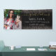 Une bannière de remise de diplômes moderne avec la photo de votre diplômé, une typographie script chic et des paillettes roses sur fond noir. Conçue par Thisisnotme©