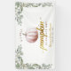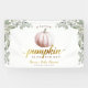 Préparez le décor de votre célébration d'automne avec cette bannière de baby shower "A Little Pumpkin Is On Her Way" (Une petite citrouille est en route), mettant en vedette une citrouille aquarelle rose, une verdure de eucalyptus doux et une typographie élégante de style doré. Ce fond polyvalent est parfait pour décorer la table de dessert, la zone de photos ou le présentoir à cadeaux, créant un point focal chaleureux et mémorable pour votre baby shower d'automne. Personnalisez avec le nom de la future maman et la date de la douche pour un souvenir magnifique que vous chérirez.