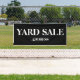 Grande bannière extérieure "Yard Sale" personnalisable avec adresse. Dans un design contemporain noir et blanc.