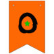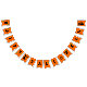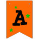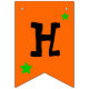 Une bannière avec "Halloween heureux" dans le noir sur un arrière - plan orange. Les chats apparaissent sur deux des drapeaux. Des étoiles de vert sont arrosées autour des lettres.