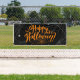 Cette bannière est montrée avec un imprimé Happy Halloween festif. Extérieur montré. Customisez cette bannière ou achetez tel quel. Choisissez parmi de nombreuses tailles, à l'intérieur ou à l'extérieur.