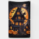 Cette bannière est montrée avec un imprimé de maison hantée d'Halloween effrayant. Extérieur montré. Customisez cette bannière ou achetez tel quel. Choisissez parmi de nombreuses tailles, à l'intérieur ou à l'extérieur.
