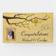 Décorez pour un ciquantième anniversaire de mariage avec la belle bannière d'or de conception de perruches. Un arbre avec le feuille d'or, les perruches et un modèle photo pendant des branches qui feront une bannière merveilleuse de faire-part pour la partie. Un modèle des textes tient compte de votre propre personnalisation. Conception originale de vecteur de la ménagerie du couche-tard, 2016. Cette conception coordonne avec les inséparables d'or invitation d'anniversaire et sauve la carte postale de date par la ménagerie du couche-tard.
