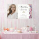 Accueillis avec élégance avec cette étonnante bannière photo, fleurissant avec des fleurs sauvages peints à la main dans les tons de violet, magenta, bordeaux, rose roux, bleu poussiéreux, et de la végétation sauge. L’élégant script de calligraphie souligne le nom de votre diplômé, tandis qu’une photo en vedette ajoute une touche personnelle et chaleureuse. Entièrement personnalisable avec votre choix de texte, de polices et d'arrière - plans, cette bannière donne le ton parfait pour une célébration inoubliable. Accueillez vos invités avec un message chaleureux et dynamique!
