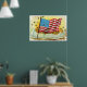 Belle image de carte postale vintage du drapeau américain avec des étoiles éclatées autour et la bannière lisant La bannière étoilée flottera en triomphe. Réimprimé sur cette impression sur toile avec un aspect peint et des options de cadrage disponibles.
