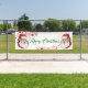 Cette bannière de Noël est présentée dans le style extérieur avec des grommets. Choisissez à l'intérieur ou à l'extérieur, avec ou sans grommets. Montré en blanc avec le texte "Joyeux Noël" avec Père Noël et étoiles. Customiser ou acheter tel quel.
