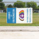 Vous pouvez afficher l'accueil de votre congrégation aux personnes LGBT avec cette banderole de coeur en plein air et audacieuse "Concilier dans le Christ" (RIC). Sélectionnez "matériau" pour ajouter/soustraire des grommets. Cliquez sur "Customiser!" pour modifier le texte avec le nom de votre communauté. Appelez-nous au 651.665.0861 si vous avez besoin d'aide pour la personnalisation.
