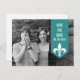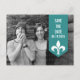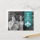 Moderne et élégante, carte de faire-part de date de mariage avec bannière florale et photo, avec une bannière en turquoise ornée d'un simple ornement de fleur de lis. Cette carte de faire-part de date de mariage est parfaite pour annoncer votre mariage imminent. Facile à personnaliser, il suffit d'ajouter votre propre photo et les détails de votre mariage. Cliquez sur "Personnaliser" pour trouver d'autres options de personnalisation.