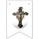 Le design présente les initiales de la mariée et du marié sur le premier et le dernier drapeau, entourés de l'image de roses et d'hydrangeas élégants. Le drapeau 2 affiche l'image d'anneaux de mariage joints. Le drapeau central affiche l'image d'un crucifix argenté, signifiant un thème catholique. Les mots personnalisables "To Be Wed" sont affichés dans une police nuptiale élégante. Très élégant. La date du mariage est affichée sur les drapeaux 13, 14 et 15. L'image élégante de roses roses douces et d'hydrangeas blancs est présentée sur les drapeaux 5 et 12 et est personnalisable. Le fond est blanc. Conçu pour se coordonner avec la "Collection de douche de mariée catholique élégante".