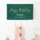 Ce design élégant de bannières d'anniversaire présente une typographie "Joyeux anniversaire" en or sur un arrière - plan vert émeraude. Vous pouvez personnaliser le nom et le texte de l'année et la couleur de l'arrière - plan. Décor parfait pour votre fête d'anniversaire adulte chic et moderne. Si vous avez besoin d'articles correspondants, veuillez me contacter par e-mail [ barabomdesign@gmail.com, printer).aspx ] . Merci !