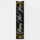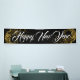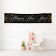 Cette bannière Holiday est présentée dans le style intérieur, Montrée en noir avec le texte blanc "Bonne année" dans un script sophistiqué avec deux tourbillons d'étoiles à l'aspect or à chaque extrémité. Choisissez à l'intérieur ou à l'extérieur, avec ou sans grommets. Customisez ou achetez comme prévu.