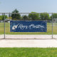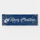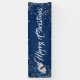 Cette bannière de Noël est présentée dans le style extérieur avec des grommets. Choisissez à l'intérieur ou à l'extérieur, avec ou sans grommets. Montré en bleu marine avec blanc "Joyeux Noël" avec cloches en argent et script fantaisie avec deux tourbillons d'étoiles en argent à chaque extrémité. Customisez ou achetez comme prévu.