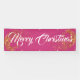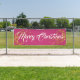 Cette bannière de vacances est présentée dans le style extérieur avec des grommets. Choisissez à l'intérieur ou à l'extérieur, avec ou sans grommets. Montré en rose magenta avec blanc "Joyeux Noël" script fantaisie avec deux tourbillons d'étoiles à l'aspect or à chaque extrémité. Customisez ou achetez comme prévu.