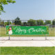 Cette bannière de Noël est présentée dans le style extérieur avec des grommets. Choisissez à l'intérieur ou à l'extérieur, avec ou sans grommets. Montré en vert avec blanc "Joyeux Noël" avec Snowman et script fantaisie avec deux tourbillons d'étoiles à l'aspect or à chaque extrémité. Customisez ou achetez comme prévu.