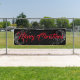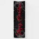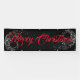 Cette bannière de vacances est présentée dans le style extérieur avec des grommets. Choisissez à l'intérieur ou à l'extérieur, avec ou sans grommets. Montré en noir avec rouge "Joyeux Noël" script fantaisie avec deux tourbillons d'étoiles gris argent à chaque extrémité. Customisez ou achetez comme prévu.