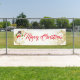 Cette bannière de Noël est présentée dans le style extérieur avec des grommets. Choisissez à l'intérieur ou à l'extérieur, avec ou sans grommets. Montré en blanc avec rouge "Joyeux Noël" avec Snowman et script fantaisie avec deux tourbillons d'étoiles à l'aspect or à chaque extrémité. Customisez ou achetez comme prévu.