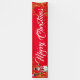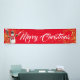 Cette bannière de Noël est présentée dans le style intérieur. Choisissez à l'intérieur ou à l'extérieur, avec ou sans grommets. Montré en rouge avec blanc "Joyeux Noël" avec Snowman et script fantaisie avec deux tourbillons d'étoiles à l'aspect or à chaque extrémité. Customisez ou achetez comme prévu.