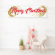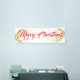 Cette bannière Holiday est montrée dans le style intérieur, Montré en blanc avec Rouge "Joyeux Noël" script fantaisie avec deux tourbillons d'étoiles à l'aspect or à chaque extrémité.