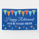 Bannière de fête de la retraite personnalisée Happy avec drapeaux de bunting colorés garland. Ajoutez votre propre nom. Design gai avec un élégant modèle typographique. Parfait pour les amis à la retraite, la famille, le collègue de travail, le patron, le mari, la femme, le père, la mère, le professeur, le collègue, l'infirmière, les employés, le grand-père, la grand-mère, le pensionné, etc. Décorations personnalisées pour la fête festive. Aussi sympathique pour l'anniversaire, l'année de bête, mariage ou Anniversaire. Couleurs personnalisables.