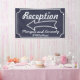 Une bannière simple en direction de la réception avec une touche de tableau noir. J'ai choisi "quelque chose de bleu" comme couleur arrière - plan bien qu'il puisse être facilement changé en appuyant sur le bouton "Modifier cette conception". Vous pouvez ajouter votre hashtag mariage ou supprimer pour n'en avoir aucun. Si votre réception pointe à droite, il y a une bannière "mariage" correspondante que vous pouvez customiser aussi. Félicitations au couple heureux !