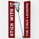 Bannière de crosse pour filles avec ligne de motivation et conception de bâton de laxisme sur arrière - plan marron. Modifiez le texte pour customiser pour votre événement de lacrosse ou d'équipe, bannière de jour de jeu, essais de nuit ou d'équipe senior.