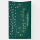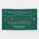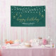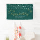 Cette conception de bannière d'événement comprend des guirlandes lumineuses géométriques dorées élégantes et une typographie "Joyeux Anniversaire" sur un fond vert émeraude. Cette bannière de félicitations est la décoration parfaite pour les événements modernes. Vous pouvez personnaliser le nom et le texte en bas de la bannière pour vos événements.