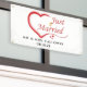 Ajoutez une touche d'élégance contemporaine à votre grande sortie avec notre bannière moderne "Just Married", conçue pour votre voiture de fuite. Cette bannière élégante présente un lettrage cursif élégant qui reflète parfaitement la joie et l'excitation de votre journée spéciale. Célébrez votre nouveau statut de marié de façon chic en vous éloignant avec cette bannière magnifiquement conçue, rendant votre départ aussi inoubliable que le reste de votre mariage.