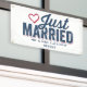 Ajoutez une touche d'élégance contemporaine à votre grande sortie avec notre bannière moderne "Just Married", conçue pour votre voiture de fuite. Cette bannière élégante présente un lettrage cursif élégant qui reflète parfaitement la joie et l'excitation de votre journée spéciale. Célébrez votre nouveau statut de marié de façon chic en vous éloignant avec cette bannière magnifiquement conçue, rendant votre départ aussi inoubliable que le reste de votre mariage.
