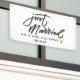 Ajoutez une touche d'élégance contemporaine à votre grande sortie avec notre bannière moderne "Just Married", conçue pour votre voiture de fuite. Cette bannière élégante présente un lettrage cursif élégant qui reflète parfaitement la joie et l'excitation de votre journée spéciale. Célébrez votre nouveau statut de marié de façon chic en vous éloignant avec cette bannière magnifiquement conçue, rendant votre départ aussi inoubliable que le reste de votre mariage.