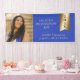 Cette bannière de graduation photo présente une grande photo avec des substituts pour le nom du diplômé, des lettres nominales de poste, l'école de graduation, le diplôme et l'année de graduation sur une fausse feuille d'or.